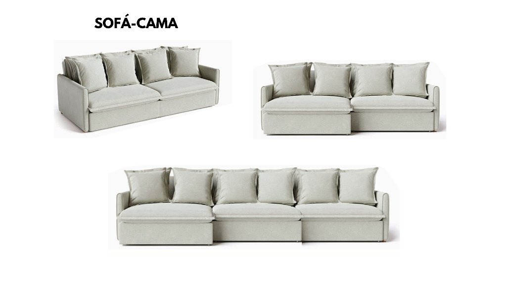 - Tipo: Retrátil, transformando o sofá em uma confortável cama quando estendido.