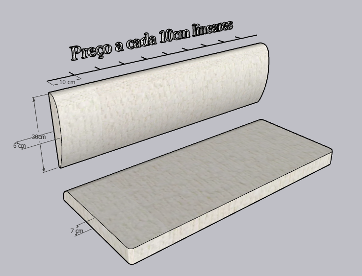 Opreço é calculado a unidade a cada 10cm lineares, ou seja, por exemplo: um banco de 1m linear, você deve adquirir 10 unidades de 10cm cada.